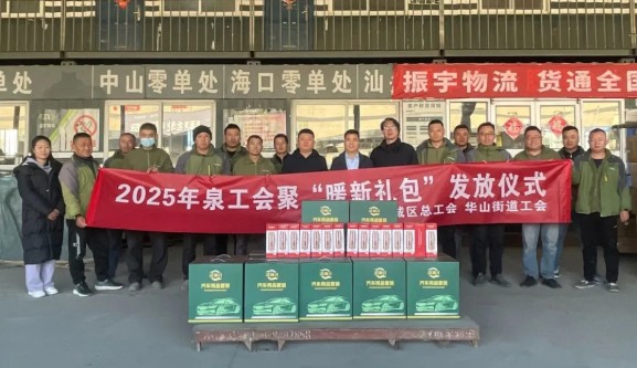 寒天暖意,工會(huì)同行。為深入踐行市、區(qū)總工會(huì)關(guān)于關(guān)心關(guān)愛新就業(yè)形態(tài)勞動(dòng)者的工作部署,12月8日,華山街道工會(huì)“泉工會(huì)聚‘暖新禮包’發(fā)放活動(dòng)”走進(jìn)振宇物流集團(tuán),將暖心關(guān)懷精準(zhǔn)送達(dá)基層一線。華山街道黨工委副書記連東坡、工會(huì)副主席王曉鳴一行深入企業(yè),為新就業(yè)形態(tài)勞動(dòng)者親手送上滿載關(guān)懷的“暖新禮包”,切實(shí)讓職工感受到工會(huì)組織的溫暖與力量。振宇物流集團(tuán)董事長(zhǎng)張憲振、總經(jīng)理孫松、工會(huì)主席張貴強(qiáng)全程陪同,對(duì)華山街道及工會(huì)領(lǐng)導(dǎo)的關(guān)心支持表示衷心感謝。