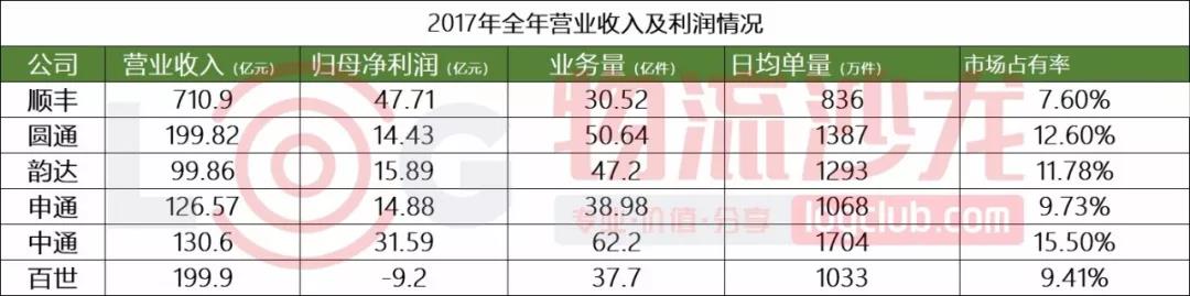 我們可以從營收增速來看看各家企業(yè)表現(xiàn)力。具體來看,百世第一,增幅高達(dá)126%,其次是韻達(dá)、中通、申通,分別是35.9%、33.4%、28.1%,都高于郵政局公布的2017年全年快遞收入增長速度(2017年行業(yè)增速為24.7%)。