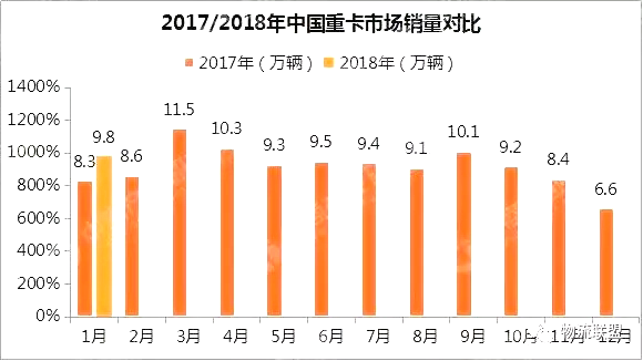 據(jù)統(tǒng)計(jì)數(shù)據(jù)顯示,自2016年10月開始延續(xù)至2017年10月,國內(nèi)重卡市場(chǎng)連續(xù)13個(gè)月爆發(fā)式增長(zhǎng)!2017年全年,國內(nèi)重型貨車產(chǎn)量為114.97萬輛,同比增長(zhǎng)55.07%,銷量為111.69萬輛,同比增長(zhǎng)52.38%。而18年1月重卡市場(chǎng)的“開門紅”除了同環(huán)比雙雙增長(zhǎng)以外,同時(shí)也打破了去年1月銷量8.3萬輛的紀(jì)錄。